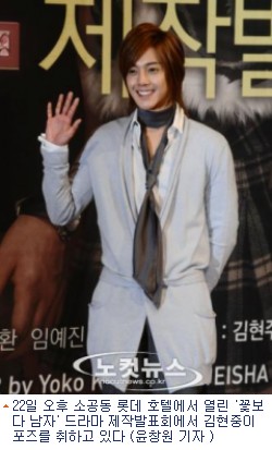 극중 여주인공 금잔디(구혜선 분)의 첫사랑으로 분한 김현중은 “여배우들과 연기하는 것도 기억에 남지만 매신마다 F4의 리더 구준표(이민호 분)에게 맞는데 그게 조금 괴롭다”고 촬영비화를 털어놓기도 했다.[BestNocut_R]이어 아이돌 가수에서 첫 정극연기에 도전을 앞둔 그는 “이런 대작에 가수가 연기자로 데뷔하는 것을 많은 분들이 우려하지만 걱정하지 않도록 열심히 연습해서 보다 자연스러운 연기 보여드리겠다”며 각오를 밝혔다.