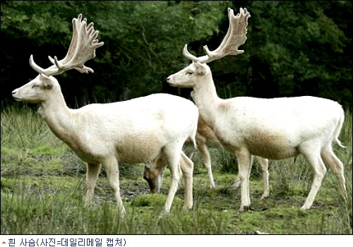 한편, 하얀 사슴들은 유전적 변형에 의해 태어나는 것으로 추정되고 있다. 국내에서는 지난 20일 충남 연기군에서 백변종으로 추정되는 사슴과 하얀 고라니가 발견되기도 했다.