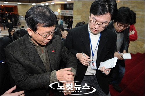 [BestNocut_R]4일 오후 서울 여의도 국회에서 의원총회를 마친 민주당 원혜영 원내대표가 취재진의 질문을 받고 있다.