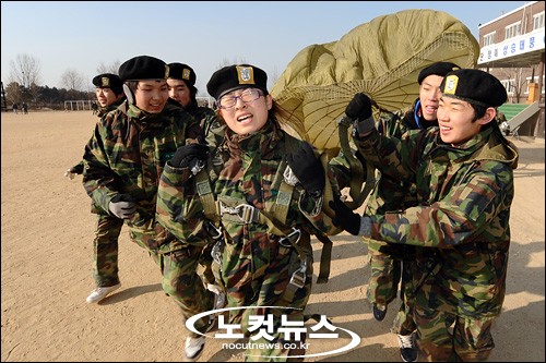 [BestNocut_R]14일 오전 서울 송파구 마천동 특전사 비호부대에서 마련된 `2009 육군 동계 특전캠프`에 참가한 교육생들이 낙하산을 끄는 훈련을 받고 있다.