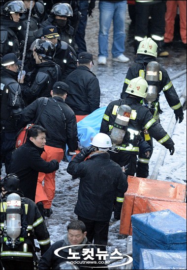 철거민 추정 4명 사망, '수습되는 시신'
