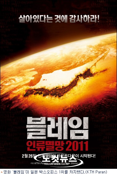 재난 블록버스터 '블레임:인류멸망2011'이 일본 박스오피스를 평정했다.