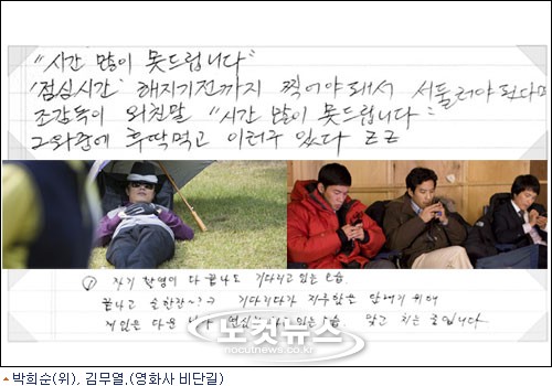 박희순은 감독님과 어색했던(?) 만남, 김민정과 첫 촬영한 날의 분위기 등을 적었다. 박희순의 포토코멘터리에는 첫 만남의 설레임과 어색함이 담겨 있어 색다른 기분을 느끼게 했다.
