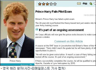 전체 2년간 진행되는 영국 공군 훈련 과정 중에서 몇 주에 해당되는 이론 기초 시험에서 해리 왕자가 탈락해 나머지 공부와 함께 재시험을 볼 처지가 됐다.
