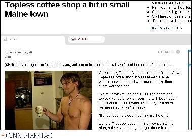 세계 경기가 어려워지면서 특이한 음식, 남다른 인테리어 등으로 고객의 눈길을 끌려는 전략들이 속속 등장하고 있는 가운데 "미국의 한 마을에서 커피숍 직원들의 옷을 시원하게 벗겨 시원한(?) 매상을 올리고 있다"고 CNN 등 외신들이 전했다.