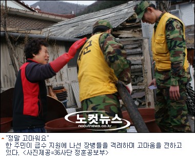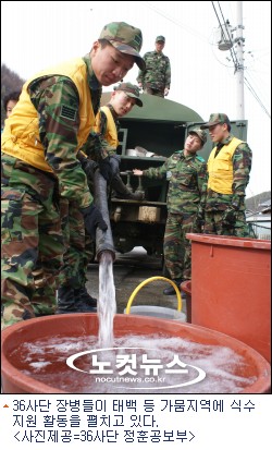 36사단은 지난 1월 28일부터 연인원 2천여명, 급수차 등 장비 20여대를 동원해 급수 지원활동을 벌이고 있다.