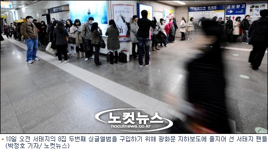 이 줄은 음반매장 앞에서부터 광화문 지하보도까지 100m이상 이어졌으며, 사전 예매를 통해 예약증을 받은 팬들은 하루 전인 지난 9일 저녁 때 부터 줄을 선 것으로 알려졌다.