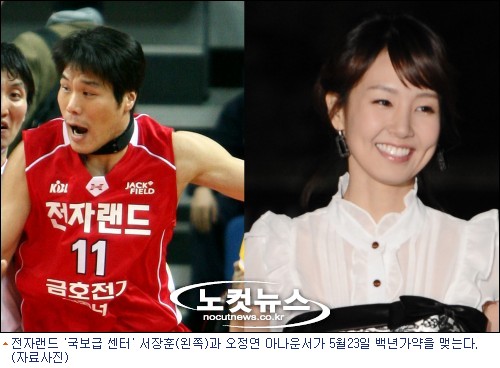 '국보급 센터' 서장훈(35 · 전자랜드)이 KBS 오정연 아나운서(26)와 웨딩마치를 올린다.