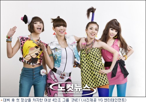 '여자빅뱅'으로 데뷔 전부터 관심을 모은 4인조 신인 여성그룹 '2NE1'(투애니원)이 데뷔 후 처음으로 가요 차트 정상에 올랐다.