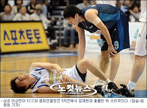 삼성 이상민(37)은 26일 잠실 실내체육관에서 열린 챔프 5차전에서 무릎을 다쳤다. 2쿼터 종료 4분28초를 남겨놓고 KCC 임재현과 부딪히면서 부상을 당한 것. 결국 들것에 실려 나갔다.