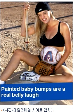 11일 영국 매체 데일리메일은 한 미모의 임산부가 자신의 배에 야구공을 그리고 글러브를 낀 손으로 그 공을 받는 흉내를 내며 찍은 사진을 공개했다.