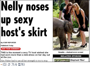 독일의 한 여성 방송인 킴 피셔가 방송을 위해 짧은 검은색 미니 원피스를 입고 베를린 동물원을 찾았다가 장난꾸러기 아기 코끼리 코 라야를 만나 혼쭐이 났다.