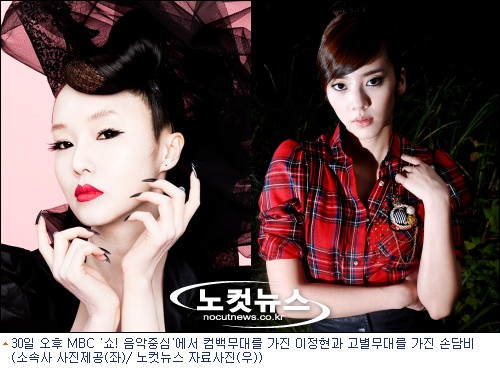 2년 7개월 만에 가수로 컴백한 이정현과 드라마 출연을 앞둔 손담비가 각각 컴백무대와 고별무대를 가졌다.
