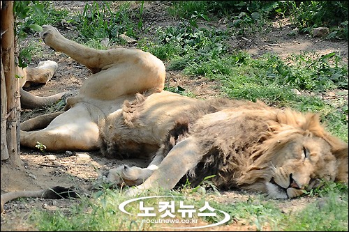 [BestNocut_R]서울의 낮기온이 28도까지 오르는 등 무더운 날씨를 보인 1일 오후 과천 서울동물원의 숫사자 한 마리가 나무 그늘 아래에서 한가롭게 낮잠을 즐기고 있다.