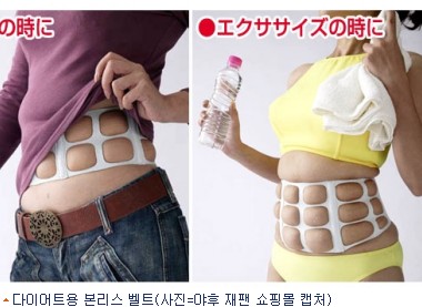 일본에서 다이어트용으로 출시한 한 고무 복대가 착용시 삐져나오는 뱃살 모양이 엽기적이어서 해외 블로거들의 관심을 받고 있다.