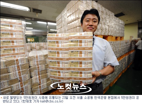 한국은행은 5만원권 지폐가 첫선을 보인 23일 시중에 풀린 5만원권 액수는 1조6천462억원으로 집계됐다고 밝혔다.