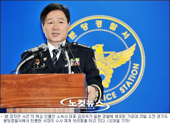 25일 오전 경기도 성남 분당경찰서에서 진행된 수사 브리핑에서 전담수사본부장을 맡고 있는 한풍현 분당경찰서장은 “한일 공조 수사를 통해 고인의 소속사 대표 김모씨를 24일 검거했다”며 “지난 조사에서 입건 또는 입건 후 참고인 중지된 김씨와 8명, 내사중지 4명 등 13명에 대한 수사를 재개할 것”이라고 밝혔다.