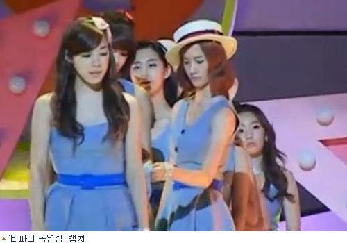 이처럼 무대에서 소녀시대 윤아가 티파니의 치마를 들추는 동영상이 공개되자 소녀시대 팬들은 '갑론을박'을 벌이고 있다.