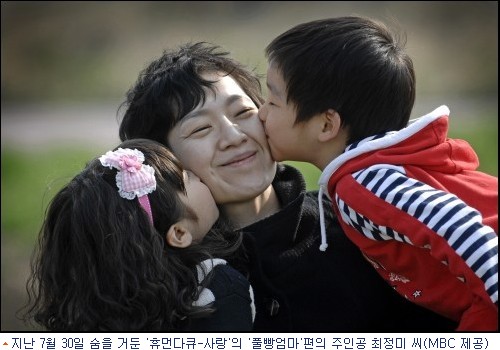 ‘풀빵엄마’ 편의 주인공 최정미 씨는 위암 말기 판정을 받은 싱글맘. 그는 두 자녀를 위해 항암 치료로 피폐해진 몸을 이끌고 꿋꿋이 풀빵 장사를 하는 위대한 모성애를 보여 안방에 잔잔한 반향을 불러일으켰다. 특히 최 씨는 연출자 유해진 PD가 얼마 전 병문안을 다녀왔을 때만 해도 건강 상태가 좋았는데 30일 갑자기 사망해 안타까움을 더하고 있다. [BestNocut_R]
