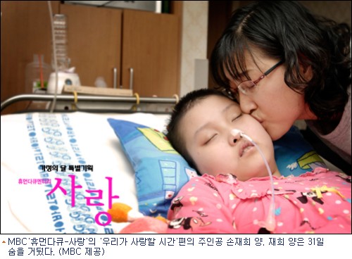 MBC 휴먼다큐멘터리 ‘사랑’에 출연했던 최정미 씨와 손재희 양이 끝내 삶을 마감했다.