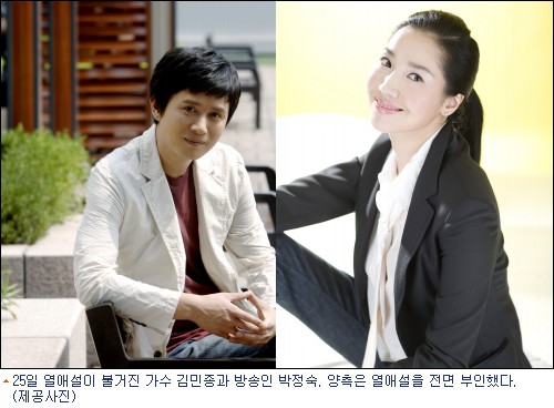 가수 김민종(38)이 최근 불거진 방송인 박정숙(39)과의 열애설을 부인했다.