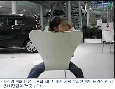 ◆ 우종현> 별 건 아니고요. 저희 가족들이 여행을 가서 전시회를 구경하게 되었는데. 관객들이 쉬라고 만들어놓은 의자에 앉아서 그 당시 한참 유행하던 손담비 씨의 노래 ‘미쳤어’를 따라 부르더라고요. 그 모습이 하도 신기해보여서, 집에서 TV도 잘 안 보는데 어떻게 저런 것을 배웠을까 싶어서 동영상으로 한 53초 정도 찍었어요. 그 내용을 여행기와 함께 블로그에 올렸는데, 그 동영상이 저작권을 침해했다고 하네요.