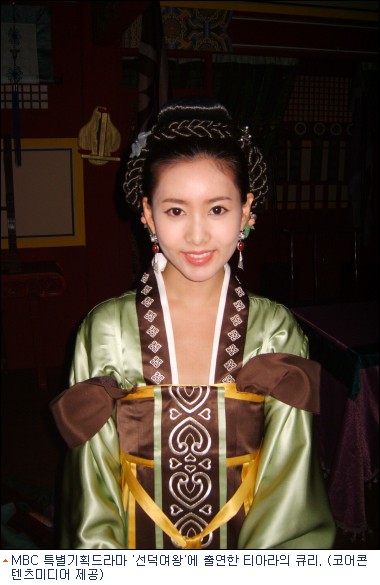 6인조 여성그룹 티아라의 큐리(본명 이지현·23)가 인기리에 방송 중인 MBC 특별기획드라마 '선덕여왕'에 김유신의 아내로 깜짝 등장한다.