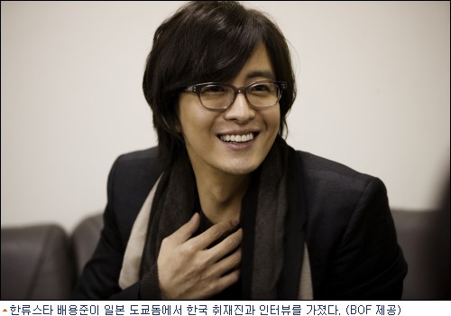 배용준이 일본 팬들 앞에 선 것은 지난해 오사카 교세라돔에서 열린 ‘2008 태왕사신기 프리미엄 이벤트’ 이후 1년 3개월 만이다. 하지만 연기자의 자격으로 섰던 지난해에 비해 올해는 다소 사정이 달라졌다. 자신이 출연해 ‘한류’의 시초로 불렸던 드라마 ‘겨울연가’의 애니메이션인 ‘겨울연가, 또 하나의 이야기’ 성우로서, 첫 저서 ‘한국의 아름다움을 찾아 떠난 여행’의 작가로서, 마지막으로 ‘한국방문의 해’ 홍보대사 자격으로 무대에 올랐기 때문이다.