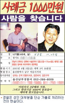 지난달 22일 부산에서 실종돼 한달만에 바닷가에서 주검으로 발견된 고 이용우(17) 군도 누나가 인터넷에 사연을 올려 사회적으로 이슈화되기 전까지는 단순 가출로 처리돼 경찰 수사의 진척이 없었다.