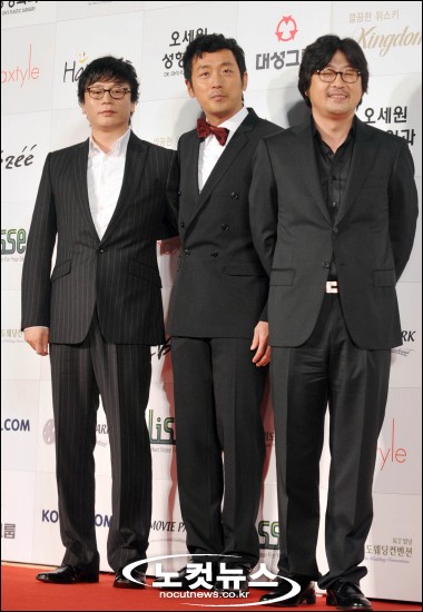 영화 '국가대표'의 김용화 감독과 하정우 그리고 김윤석이 6일 오후 서울 송파구 올림픽공원 올림픽홀에서 열린 제46회 대종상영화제 시상식에 나란히 참여해 포토타임을 갖고 있다.