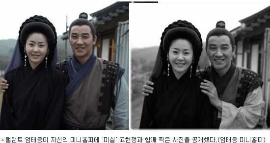 엄태웅은 8일, 자신의 미니홈피에 ‘아쉬운, 어색한 미소만’이란 제목 하에 고현정과 함께 찍은 3장의 사진을 게시했다. 이 사진에서 고현정은 검은색 의상에 단정한 헤어스타일을 선보여 미실의 죽음 장면을 짐작케 했다. [BestNocut_R]