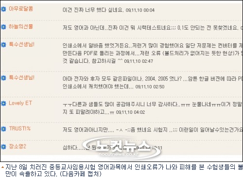 교원임용고시 준비생들이 모인 인터넷 카페에는 ‘영어 24번은 확실히 인쇄상 오류다, 정정신청을 꼭 하자’는 항의성 글들이 이어졌다.