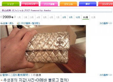 이 블로그에는 그의 지갑 사진이 함께 공개됐다. 금색 장지갑인 문제의 지갑은 사진 상에서는 다소 여성용 지갑처럼 보이지만, 추성훈은 이 지갑의 크기가 여성용이라고 보기에는 조금 크다고 설명했다.