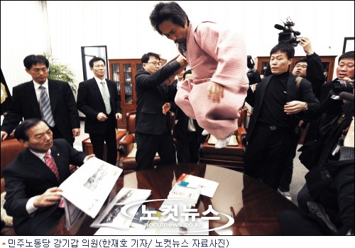 당시 강제 해산에 항의하던 강기갑 대표는 경위와 몸싸움을 벌이고, 항의하기 위해 국회 사무총장실에 들어가 소란을 피우다 공무집행 방해 혐의로 불구속 기소됐다.