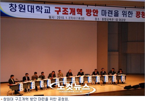 창원대학교가 부산대학교와의 통합을 추진하는데 대해 지역사회가 강력히 반발하고 있는 가운데 27일 오후 창원대학교에서 '창원대 구조개혁 방안 마련을 위한 공청회'가 열렸다.