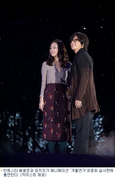 한류스타 배용준과 최지우가 일본 DATV와 스카파 채널에서 방영 중인 애니메이션 '겨울연가' 최종회에 출연해 연기호흡을 맞춘다.