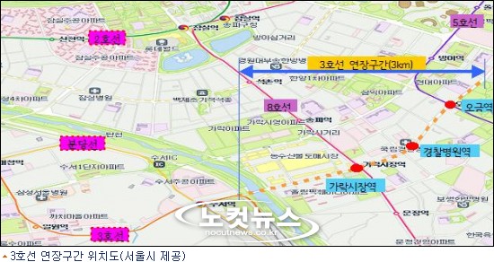 지하철 3호선 연장구간의 개통은 지하철 5,8호선과 분당선과의 환승 네트워크를 구축하는 것이어서 송파·강남권으로 이어지는 서울 동남권역 도시교통난 완화에 도움이 될 것으로 전망된다.