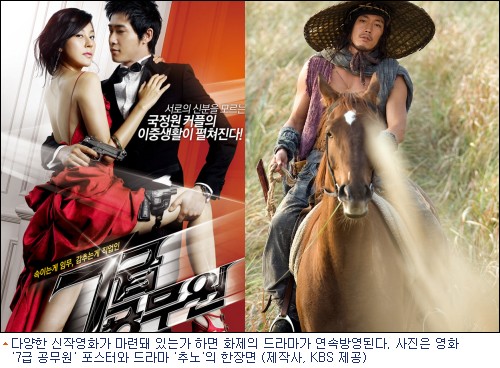 드라마는 연속상영으로 신작영화의 기세에 눌리지 않겠다는 추세다. tvN은 14일 오전 9시부터 자정까지 현재 월화 드라마 시청률 1위를 달리는 KBS 2TV '공부의 신'의 1~12회를 연속방송한다. 또한 KBS 드라마는 인기 드라마 '추노'의 1~12회를 13,14일에 걸쳐 연속 방송한다.
