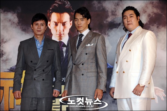 25일 오후 서울 소공동 롯데호텔에서 열린 MBC 특별기획드라마 '신이라 불리운 사나이'(극본 이홍구/연출 이형선) 제작발표회에서 출연한 배우 김민종, 송일국, 조진웅이 포즈를 취하고 있다.
