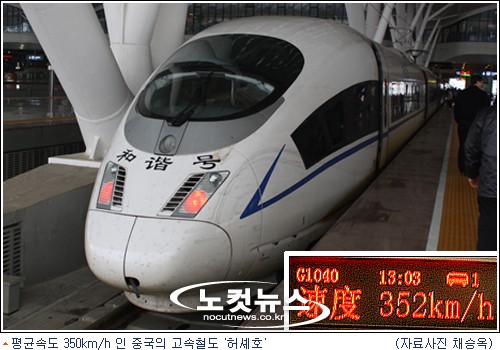 평균속도 350km/h 인 중국의 고속철도 '허셰호'