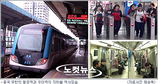 중국 무한의 황포역과 우이역의 지하철 역사모습