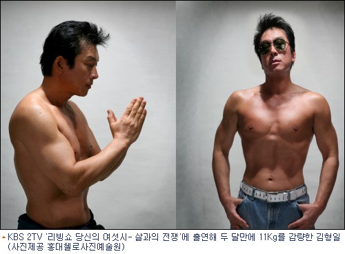 김형일은 지난 1월부터 KBS 2TV '리빙쇼 당신의 여섯시- 살과의 전쟁'에 출연해 두 달간 혹독한 트레이닝과 철저한 식이요법으로 무려 11Kg 감량에 성공, '배불뚝이' 아저씨에서 단단한 근육질의 중견남이 됐다.