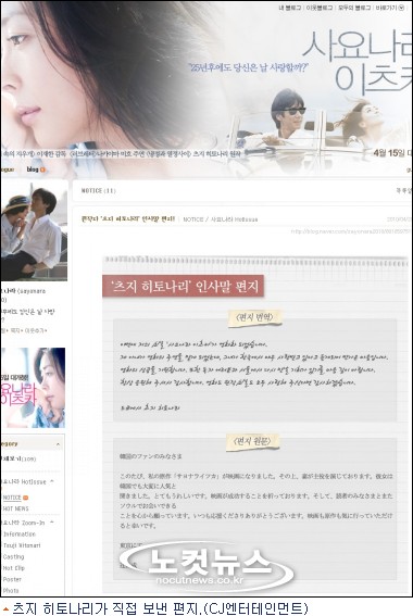 한국의 기획과 자본으로 만들어진 한국산 글로벌 프로젝트 영화 '사요나라 이츠카'의 원작자 츠지 히토나리가 한국 팬들에게 감사의 편지를 보내 화제다.