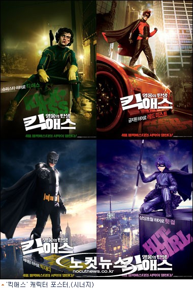 지난 4월 22일 개봉한 19금 슈퍼히어로 무비 '킥애스'에는 모두 4명의 수퍼히어로가 등장한다. 이들은 선천적 수퍼히어로가 아닌 후천적 영웅들이다. 그나마 '힛걸'과 '빅대디'는 훈련된 전사지만, '킥애스'와 '레드 미스트'는 무능하기 짝이 없는 '무늬만' 수퍼히어로로 설정됐다. 지금껏 흔히 봐왔던 슈퍼히어로와는 또 다른 매력을 지닌, 개성 만점 캐릭터들을 살펴봤다.