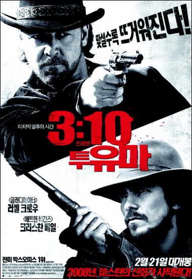 원제 ''3:10 To Yuma'', 웨스턴 액션, 감독 제임스 맨골드, 주연 러셀 크로우, 크리스찬 베일, 117분, 15세이상 관람가, 21일 개봉.
