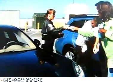 지난 25일 오전 9시20분쯤 미국 캘리포니아주 남서부 산타모니카 피어 지역에서 자동차 전문가와 함께 여행용으로 좋은 자동차들에 대한 정보를 전하던 리포터 게일 앤더슨은 차량 뒤에 서서 불법주차스티커를 붙이는 교통경찰을 발견했다.