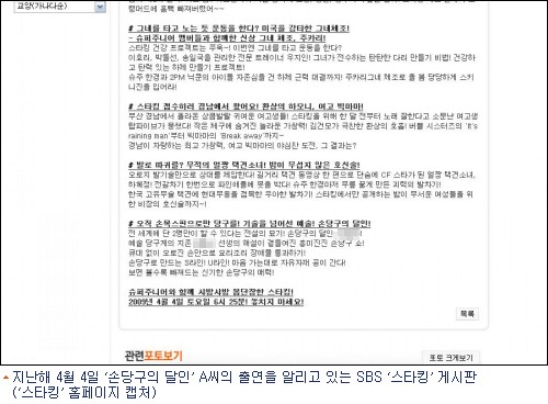 지난해 표절논란, 출연자 회유 논란으로 물의를 빚은 SBS 주말예능프로그램 ‘스타킹’이 또 다른 구설수에 휩싸였다.