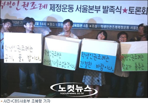 전국교직원노동조합 서울지부와 청소년인권단체 아수나로 등 33개 교육단체로 구성된 '학생인권조례 제정운동 서울본부'는 7일 발족식을 갖고 공식 활동에 들어갔다.