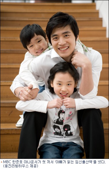 한 아나운서는 최근 첫 저서 ‘아빠가 읽는 임신출산책’(웅진리빙하우스)을 냈다. ‘MBC 한준호 아나운서의 임신출산육아노트’라는 부제가 붙은 이 책에 대해 그는 “결혼생활 11년, 육아 경력 10년차인 남자가 자신의 인생에서 가장 소중한 부분을 담아 인생에서 가장 스펙터클한 순간을 맞이할 예비 아빠들에게 전하는 오답노트 같은 책”이라고 설명했다.