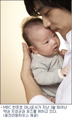 지난 3월 막내 지성이를 낳은 한준호 아나운서는 최근 육아 휴직을 신청했다. MBC 남자 아나운서 중 육아휴직을 신청한 것은 한 아나운서가 처음이다.
